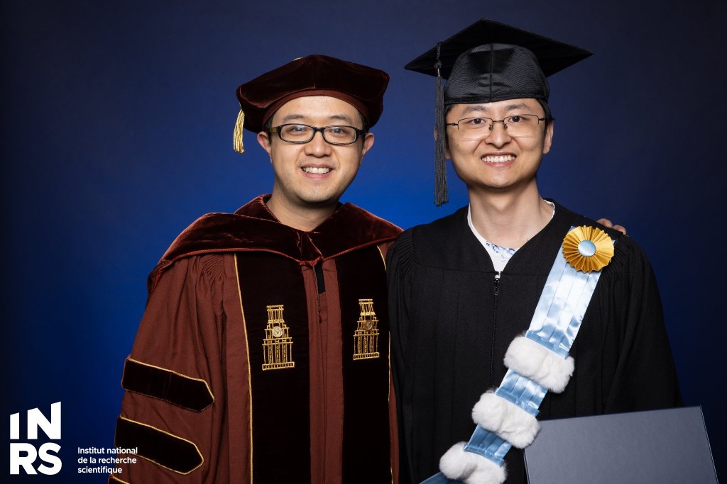 2024/05/16 – Cheng Jiang and Patrick Kilcullen received their Ph.D. in the INRS graduation ceremony. Patrick received the INRS Best Doctoral Dissertation Award. Cheng received the INRS International Outreach Award. Both are included in the Scientific Direction’s Honour Roll. Congratulations. [Link]