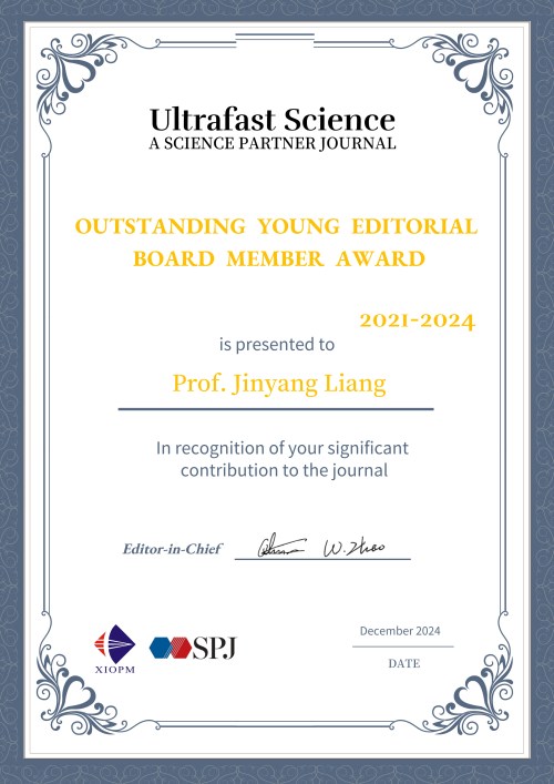 2025/03/01 – Jinyang Liang receives the Outstanding Young Editorial Board Member Award from Ultrafast Science. Congratulations.